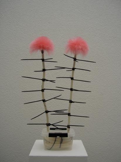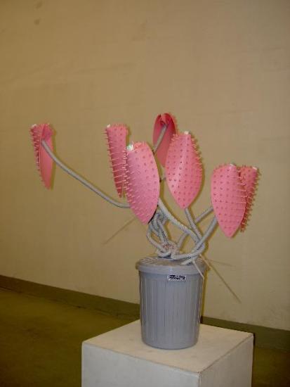 Titel: Calliandra Mai Jahrgang: 2006 Mass: ca.105x80x50 cm Technik: Verschiedene Baumaterialien und Alltagsgegenstände