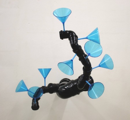 Titel: Blausucht Jahrgang: 2009 Mass: ca. cm Technik: Verschiedene Baumaterialien und Alltagsgegenstände