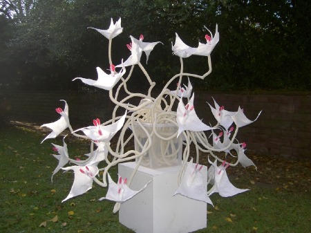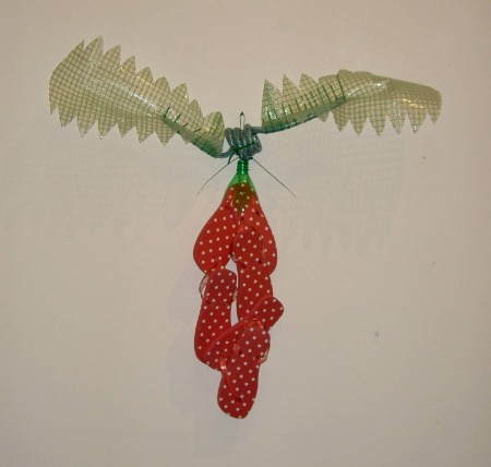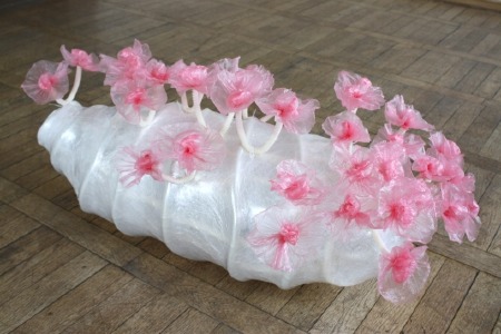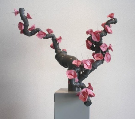 Titel: Kokonblüten von der Nahe Jahrgang: 2009 Mass: ca.175x110x96 cm Technik: Verschiedene Baumaterialien und Alltagsgegenstände