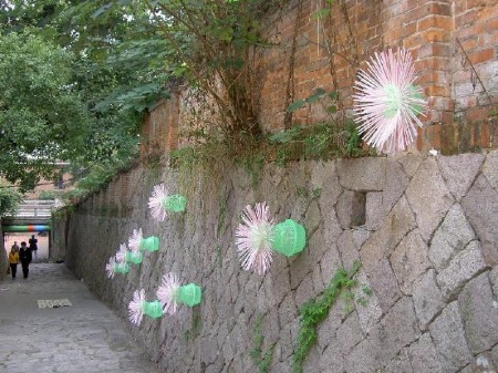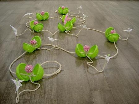 Titel: Fadeblümen Jahrgang: 2007 Mass: Variabel Technik: Verschiedene Baumaterialien und Alltagsgegenstände