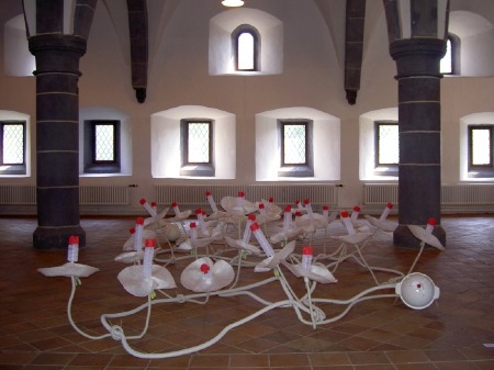 Titel: cucurbita-Gldhände Jahrgang: 2007 Mass: Variabel Technik: Verschiedene Baumaterialien und Alltagsgegenstände